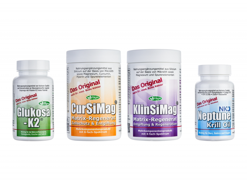 CurSiMag®, KlinSiMag®, Glukosa-K2® und Neptune-Krill-Oil NKOTM unterstützen die Wirkung des EQ103.